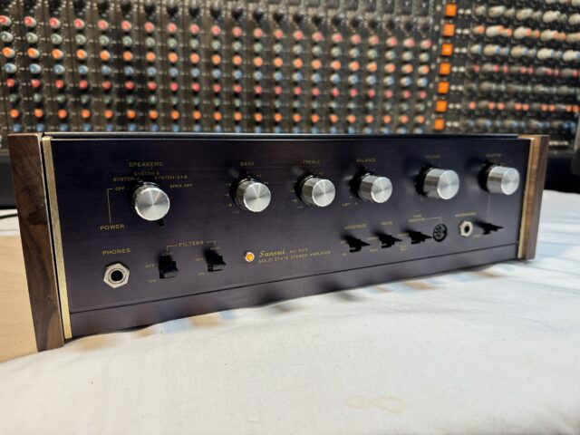 Here is one of two fully restored Sansui AU-505s we currently have for sale. This unit received our recap/restore service and it’s sounding wonderful. It comes with Mylar capacitors on the audio signal path and brand new walnut panels on the cabinet, beautifully finished by Mark, one of our techs here. The 505s are amazing little amplifiers. They used old technology (for the time) with capacitive coupled outputs. With todays 10X better quality caps, and increasing that output cap to a very large value, these amps really shine. If you only need 20-25 watts, this amp will astound and really deliver. If you’re interested in this unit, shoot us an email at tech@qrxrestore.com.