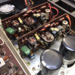 You cannot begin to repair these boards, if they have a problem, until you have changed out the fusible resistors and the caps.  Once you have done this you can re-install them and see if they will come in range for offset.  If they don’t there are two things that can be wrong (or both), either there is something wrong on the driver board or an output transistor is blown.  Usually it is the board.  If you check the output transistors and they are ok, check TR5 or TR6 as these are the ones most often bad.  In fact these are the only ones I have found bad so far in our shop.   I have helped people on line who have had others blown, but TR5 and TR6, depending on which channel, are the most likely suspects, especially if you have a high voltage on the output, almost rail.  These transistors get blown out by the 180 ohm fusible resistor (R33,34) drifting out of range.  I have measured these resistors as high as 400+ ohms.  When they go high, TR5/6 tries to correct and gets hotter and hotter until it blows.